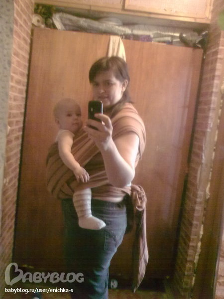 Учимся носитьВот нам почти годик, а шарф всеже освоить решились. Приобрели разношенную эстетику (как обычно вариантов подходящих нам по цене не отечественных слингов не было, как только купили эстетику - тьма тьмущая),намотали. Прошу оценить и указать на ошибки. Фото под катом