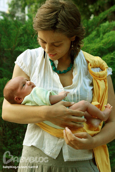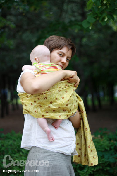 Принимайте нас с Кирюхой в свои ряды. Поскольку мой любимый отпрыск почти 100% времени находится на мне, я решила-таки обзавестись такой полезностью, как слинг.