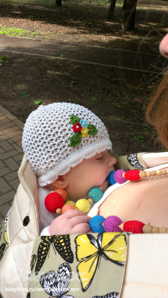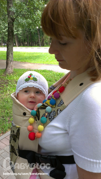 И одежда в тон подобрана... Слинго-бусы случайно не сами вязали?