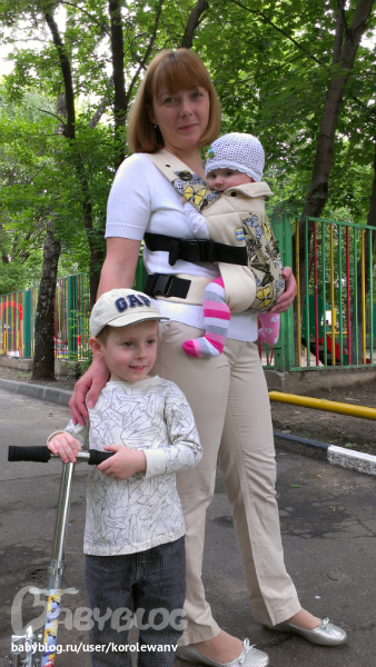 Это рюкзак ай лав мам универсал, он просто восхетителен!!! Лямочки тоненькие, лежат аккуратненько, лишнее фиксируется резиночкой, поэтому никаких веревок не висит))) Правда в этот раз она с братика глаз не сводила и сидела на одной стороне, видно на фото с зади и атаковала накладку для сосания))