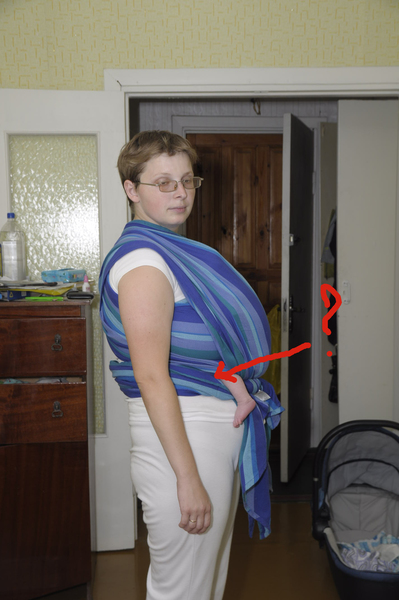 Не получается мне ножки на полотнище поставить, только если немножко упиреть, в те полотнища, когда узел уже вперед завязываешь. Плюс - если достаточно высоко его сажаю, ножки нормально не сгибаются, потому как там у меня грудь!!! Получается, что бы М получилась, ребенка чуть ниже надо сажать, тогда вроде и попа нормально просаживается и коленки вверх подымаются хорошо.