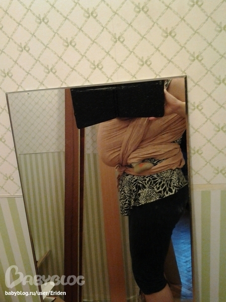 Главное,чтоб ребенку удобно было. Я на ютубе ролик нашла, по поиску слинг, крест над карманом. По нему и училась.