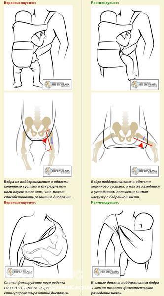 Положение ребенка в слинге идентично положению в стременах, слинг является одним из наиболее действенных средств для предотвращения развития дисплазии.