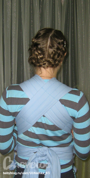 хорошо все!я крест даже еще ниже вывожу под попу,ну это на улицу,а так дома так же!красивый слинг!а что за он?