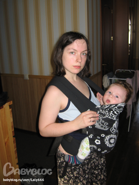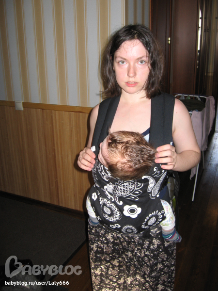 Нужно шлейки подтянуть, чтоб вы могли поцеловать ребенка в макушку. Если он так низко будет висеть, носить будет тяжело.