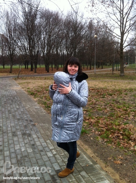 Села курточка на нас как влитая, ничего нигде не жмет, не висит)) Капюшончик детский как раз по размеру, не слишком большой, как, бывает, жалуются мамы. Но вот мне показалось, что удобнее всего в куртке гулять, когда ребенок бодрствует, потому что когда он засыпает и при этом хочет как обычно прислониться к маме - воротничок мешает, и приходится либо расстегивать его и подставлять свою шею ветру, либо оставлять застегнутым и постоянно придерживать головку малыша, чтобы не болталась. А как поступаете вы?