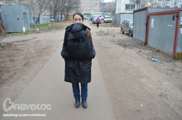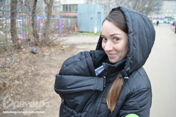 Внешне мне куртка очень нравится, только на левом плече большая зелёная эмблема, но лично мне она не мешает)) Куртка состоит из собственно куртки, слинговставки, манишки для мамы и капюшона с манишкой для ребеночка. Куртка качественная и ОЧЕНЬ теплая! В 0 градусов мы спарились. В -4 оделись под неё легко и было комфортно. Очень хорошие рукава, манжеты в "облипочку", мой капюшон не сваливается, лёгкая, особо не пачкается.