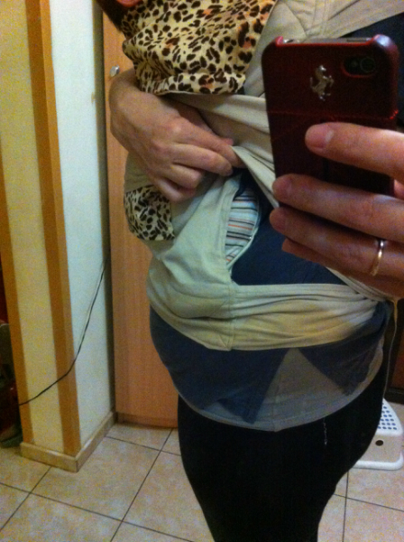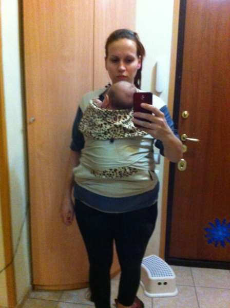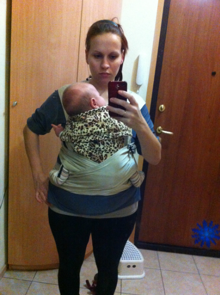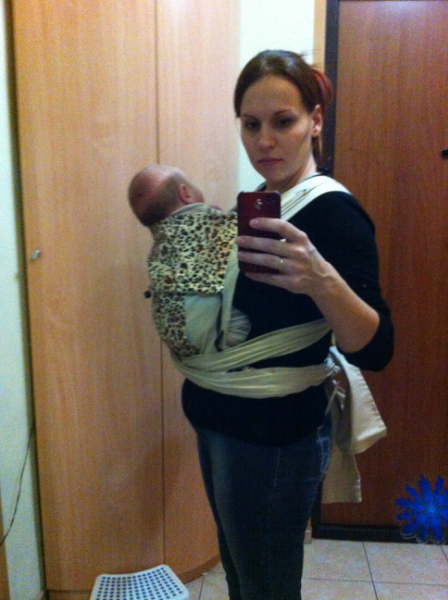 Мы в месяц начали носиться вертикально ножками вовнутрь. Поносились так несколько дней и малой воспротивился (только потом я прочитала, что по новым рекомендациям ножки вовнутрь вообще не стоит делать) - вроде сидит-сидит нормально, потом пошевелится и кааак заплачет, видимо, отсиживал ножки. Мы их вытащили наружу и мотали полотнища под ногами, и все стало отлично.