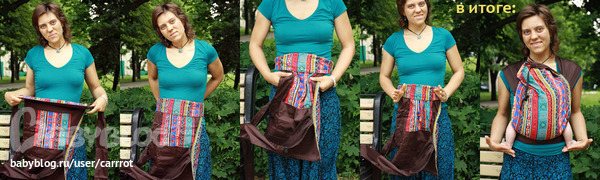 Лямки либо проводим под ножками ребенка, как на фото выше, либо перекрещиваем под крестцом, чтобы лямки своим давлением не вжимали таз ребенка в маму, излишне не раскрывали колени малыша.