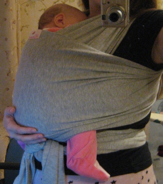 Учимся носитьВсем здравствуйте! Ребенку 1,5 месяца, сегодня первый раз попробовала намотать трикотажный слинг-шарф. В общем и целом все понравилось, ребенок сразу же уснул в нем)) Насторожило одно-
