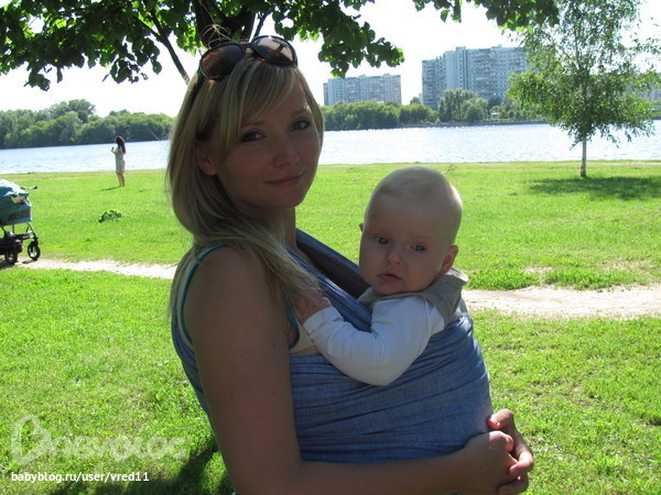 ! Какой же ты длинный, как с тобой управится. Инструкция слава богу прилагалась, через час мучений у меня все же получилось хорошо (не туго, ни сильно свободно) наматать его и впихнуть сынулю. Понятное дело ему идея прибывания в не понятной для него штуке показалась плохой через минут 10 я получила похныкивания и вырывания. Прошел месяц, мы уже долго могли находится в слинге дома, время прибывания увеличивала постепенно, часто просто одевала его и ходила , чтоб малыш видел его со стороны. Проблемы в ношении его начались с теплой погодой, начали ходить на улицу в коляске и слингом в ней. Тоесть когда малыш просыпался я наматывала его и сажала малыша. Минусов в ношении слинга для меня было много: