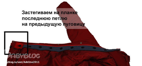 Я нашла только вставки, где она на пуговицы изнутри куртки крепится и застегивается на свою молнию. Пуговицы надо пришить к своей куртке. Тогда можно, чтобы он аболталась ниже куртки и молния совсем не мешает.