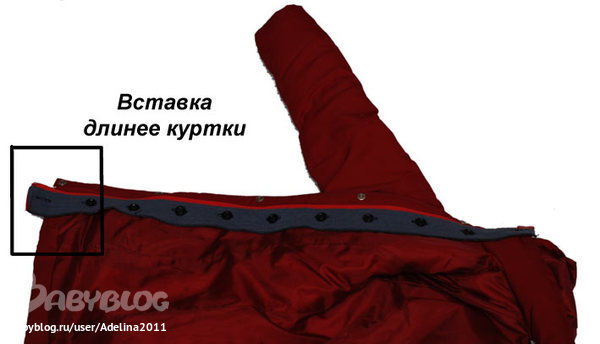 3. Чем удобная встроенная вставка, даже если она короткая. Тем, что Вы можете всегда застегнуть свою куртку на ее родную молнию снизу и до самой вставки, поэтому нигде ничего не будет поддувать - это дополнительное тепло для Вашего малыша.