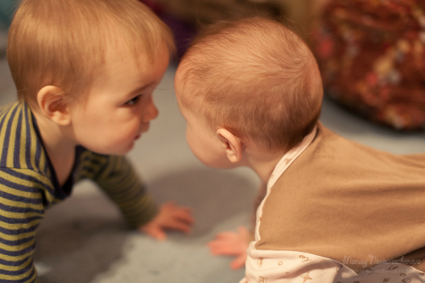 У нас просто Варька не видит детей. К врачам мы редко ходим, гуляем одни, так что цель поещдки была ее пообщаться с малышами. Это к ней кавалер приполз знакомиться. =)