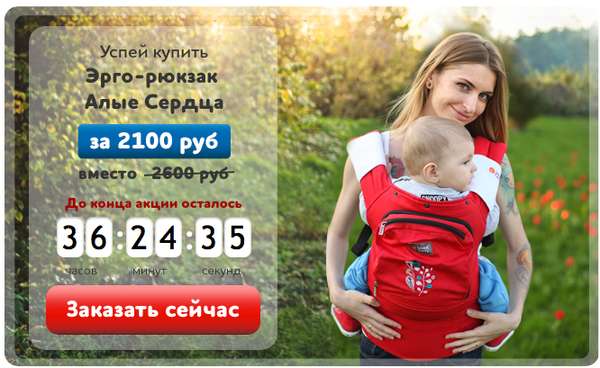 Только два дня! Вы можете приобрести Эрго-рюкзак расцветки "Алые сердца" по по цене 2100 рублей, Вместо 2600 руб.