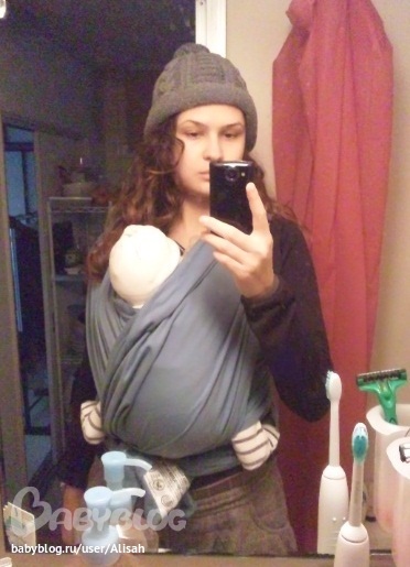 Пока ношу в трикотажном слингошарфе Moby Wrap и им довольна. Но в жару боюсь мы сним прилипнем друг к другу...