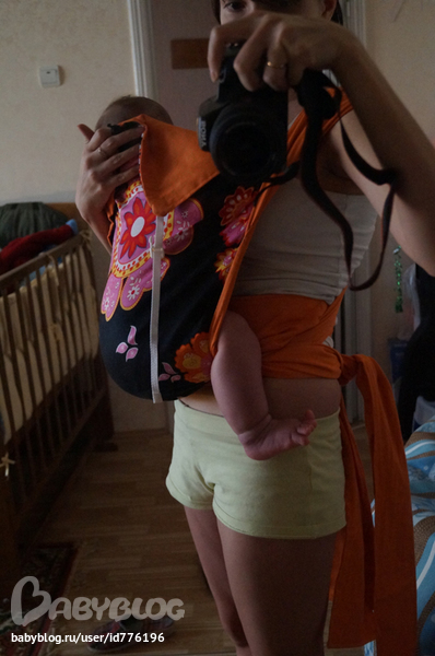Через неделю каждодневных намоток, я вроде научилась это делать. Теперь май - это просто мое спасение! И дома ребенка в нем укачиваю, и в поликлинику беру, в гости. Одевается быстро, ребенку комфортно, он хорошо в нем засыпает. Единственное - от веса моего толстощека у меня быстро начинают болеть плечи.