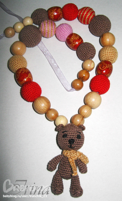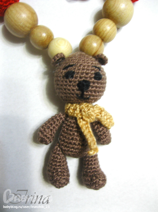 Это просто на фото так кажется. На самом деле они очень миниатюрные. Медведик 3 см, соответственно и бусинки не большие. Самая большая бусина (обвязаная коричневыми ниточками d=20 мм)