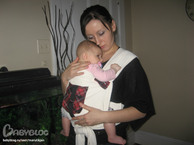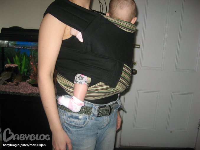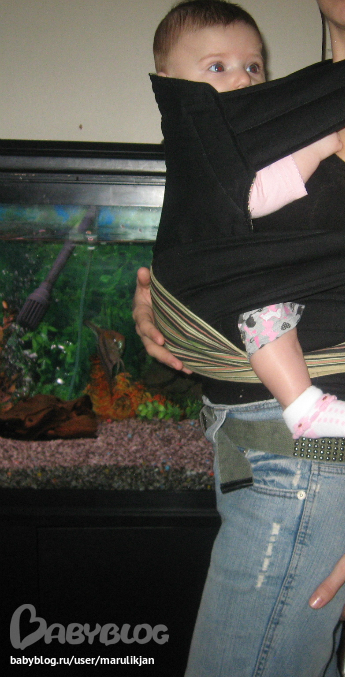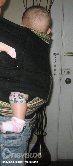 Май-слингМесяц назад я сшила наш первый май.Получился неплохо,хотя накосячила немного.Решила во что бы то ни стало сшить еще,с учетом прошлых ошибок,так как и мне и дочке очень понравилось,гуляли и дома,и на улице,она сидит спокойно,по сторонам смотрит,не то что в коляске,из которой ничего не видно,да и руки у меня освободились,теперь даже уроки старшей в слинге делаем.Первый наш май я шила из тонкой джинсовой ткани,второй из вельвета,третий из 100% хлопка.Лучше всего получился последний,он двухсторонний,с одной стороны черный,с другой полосатый.Очень удобный,веса дочки не чувствую вообще.Месяц назад уже просила вас,девочки,посмотреть,правильная ли у нас посадка,сейчас постаралась учесть наши ошибки,посмотрите пожалуйста еще раз,правильно ли мы сидим?