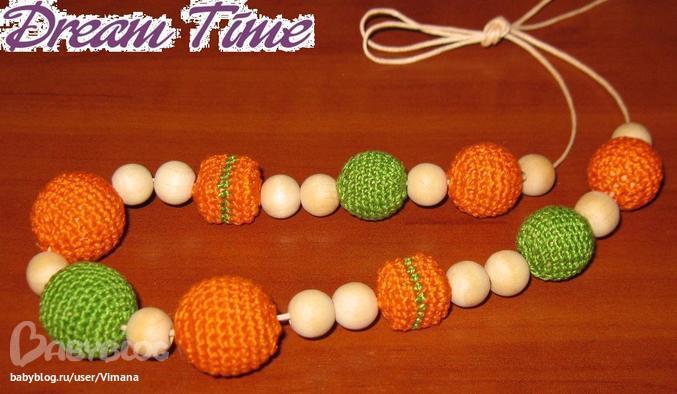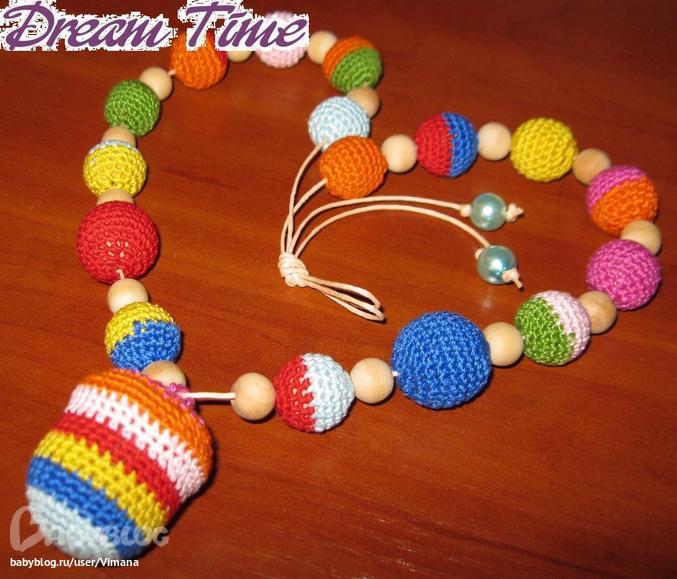 -когда у малыша режутся зубки он может грызть, обсасывать бусинки и не уронит их на пол;