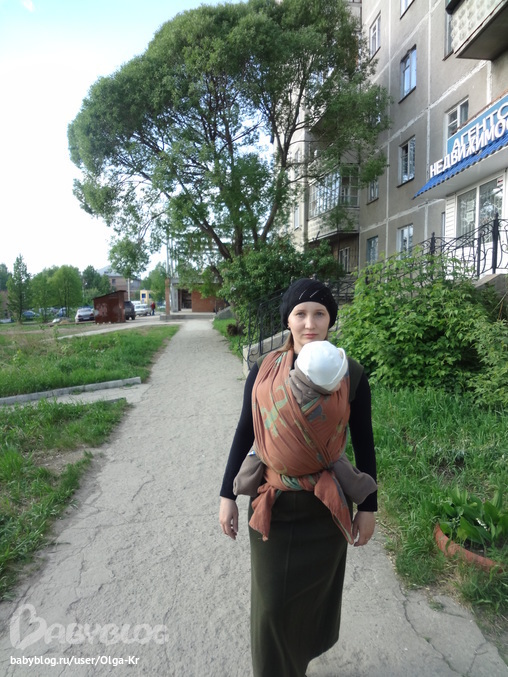 Мне длина шерстяного шарфа (5ка альпаковых рыб хернум) не позволяет с текущей намоткой (кнк с вертикальной посадкой для месячного младенца) вывести полноценный второй узел вперед. И сзади получается такая блямба.:(