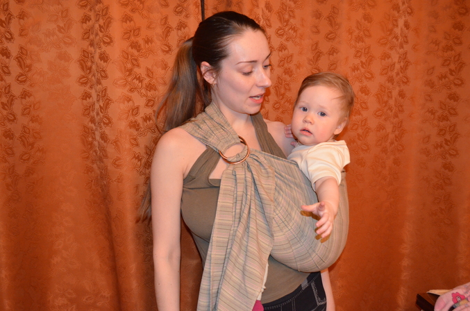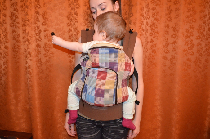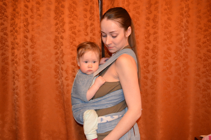 Его дала мне попользоваться знакомая девушка, которая свою дочку относила только в слингах. На длительные расстояния он не годится, спина устаёт с подросшим ребёнком, по сравнению с шарфом (которого у меня не было, но давали попробовать поносить) достаточно тяжело. Жалко мы не сделали фронтальную фотку, сейчас я его уже отдала.