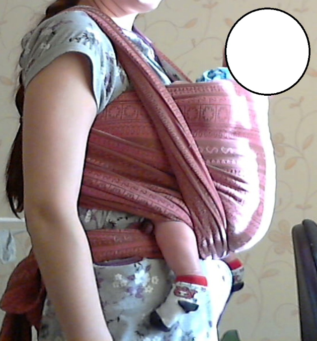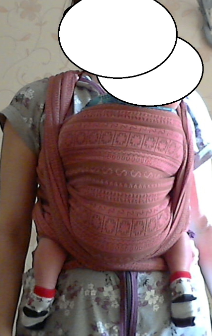 Попку лучше пониже просадить, а коленки повыше. Тогда и ребенку будет удобнее. Видео от Слингопарка посмотрите, если не видели, там хорошо показано, как попу просаживать. Под коленками бывает давит, не перетягивайте сильно нижний борт и в готовой намотке проверяйте - просовывайте ладонь под коленки. Верхний борт старайтесь получше притянуть. В общем просто тренируйтесь)