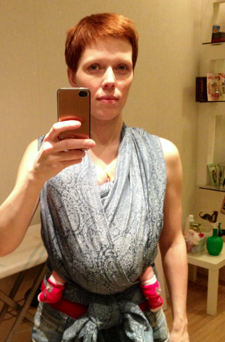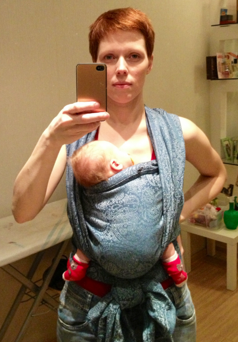 Нет, так не желательно, чтоб малыш кренился... Вы неплотно притянули карман. На втором фото явная асимметрия. Притягивайте плотнее, тогда малыш не будет крениться так. В остально все прекрасно:)