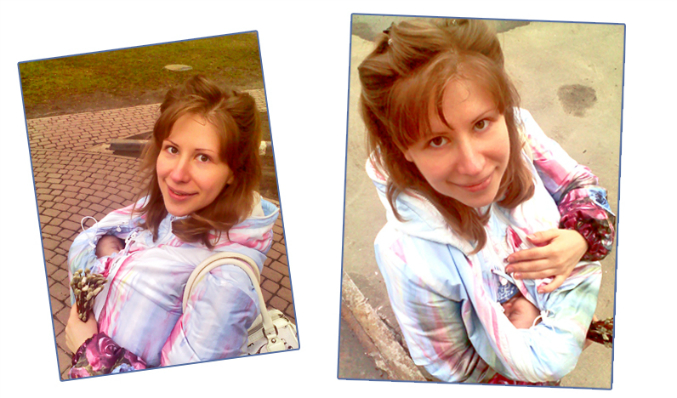 Горизонтальная намотка в слингокуртке "ILoveMum" вуаля.