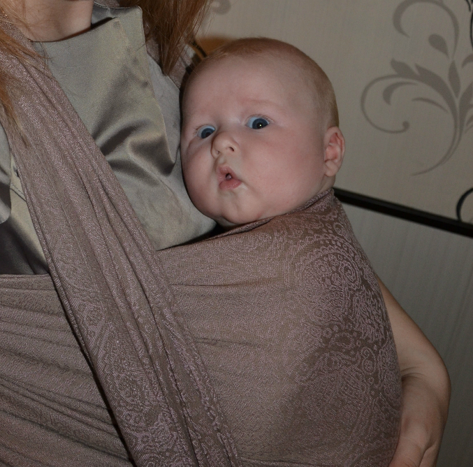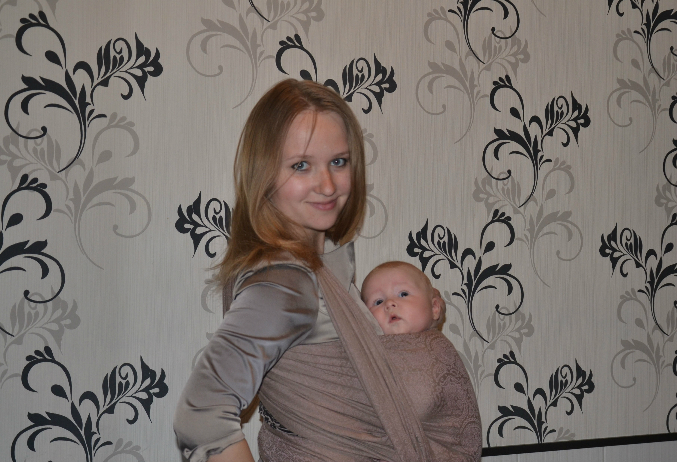 Ой, какие же вы хорошенькие! И вы и малыш :)Кстати, вы еще на шелковую блузку мотались! Я приматывала на шелковое платье, когда на ДР ходили, и это было в разы сложней, чем на нескользящую х/б футболку примотать.