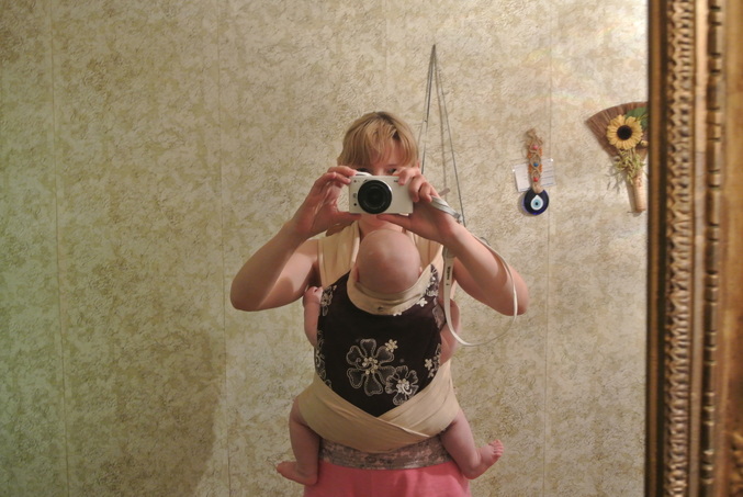 Сегодня попыталась намотать и скрестить лямки на попе, посмотрите правильно ли я сделала, правильно ли сидит малыш и может нужно спинку подогнуть на один подворот чтобы она стала короче?