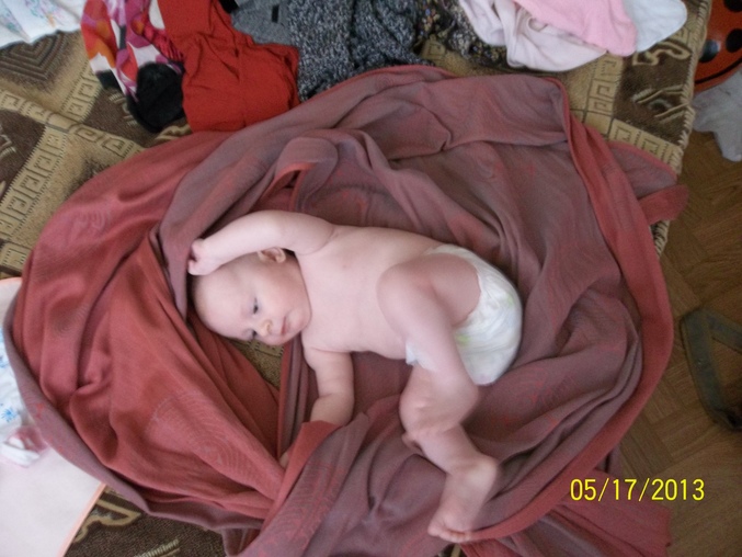 А вообще у нас мелкая в 6 месяцев очень веселилась, когда ножки в слинге выпрямляла, прямо специально это делала. Иногда из-за этого я не специально проводила жгуты под голенью, тогда намотка больше 20 мин не выдерживала. Вы старайтесь прямо на ощупь и подводить под коленки, тогда ему будет тяжелее ножки выпрямлять.
