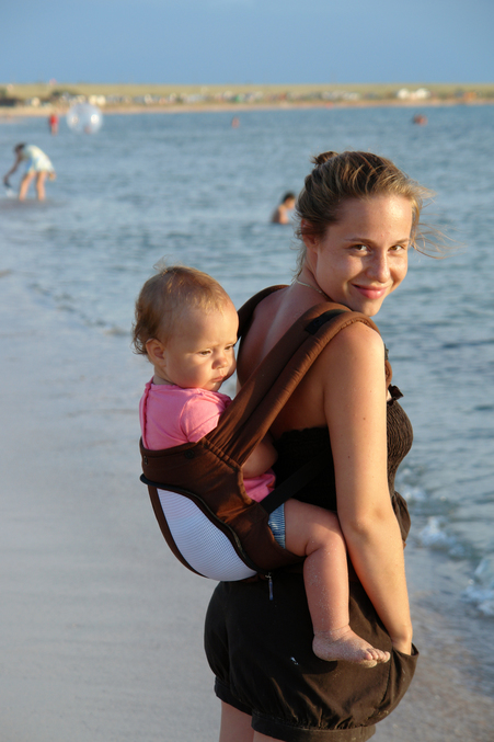 Наш первый отдых на море с Лиюшкой (2010 год). Чикковская коляска потеряла колесо в нашей непростой степи на третий день, хорошо, что со мной был рюкзачек :)