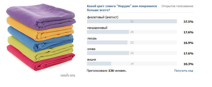 Кстати, несмотря на то, что самыми универсальными и популярными считаются голубые слинги, в этот раз сердца покупателей покорил . Как мы это узнали? Все очень просто! Мы поместили опрос в нашей и выяснили, что из 136 человек 51 остановили выбор именно на этой расцветке.