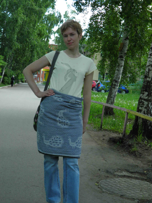 Давно хочу показать вам один чудесный шарфик - бело-голубых павлинов, у нас он в 3-ке. Куплен был практически на слингопенисии исключительно из любви к павлиньему семейству, чисто посмотреть-потрогать и дальше отпустить. Но неожиданно он у нас задержался, и видимо, надолго! Совсем не тонкий, но при этом такой мягкий и платичный. Достаточно грузоподъёмный - мою почти-двухлетку спокойно несёт в однослойной намотке, ничуть не хуже льна. А кроме того, так легко и удобно ложится на плечи в сумку - согласитесь, очень важный параметр для слингопенсионЭра. И цвеееет!!! Абсолютно универсален и просто услада_глазу для любителей джинсового стиля.
