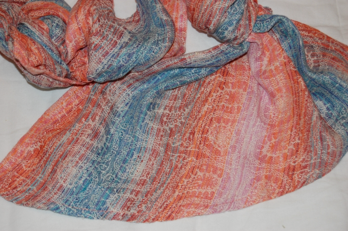 Мой лён по расцветке похож на слинг-шарф Мама Рада Этно, очень радужный и красивый.