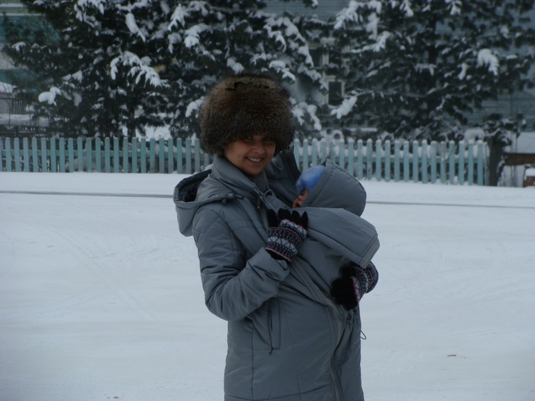 ФотоВесной я с сынулей иногда гуляла в слингокуртке со специальной вставкой-капюшоном для малыша.