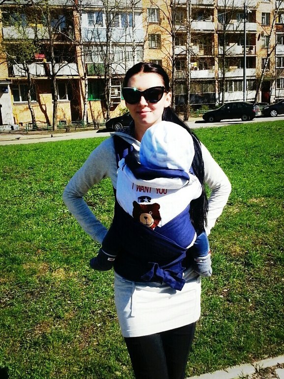 Май-слингСегодня я посадила дочку немного по-другому. Май подогнула и присборила. Намотала. На этот раз она сидела молча, не капризничала и не ерзала. Посмотрите, как по-вашему, нормально я намотала?