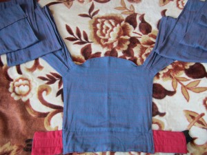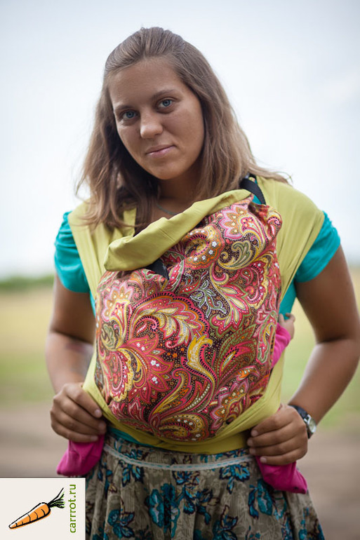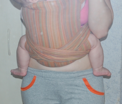 И повыше старайтесь малыша приматывать. Этот уровень у вас для кормления хорош.Если все равно ничего не будет получаться, то присмотритесь лучше к шарфовым. У них лямки сами по себе шире. Обхватывают всю попку малыша. Насчет пояса даже не знаю... если попадется с широким, то тоже будет замечательно)Это шарфовый май.