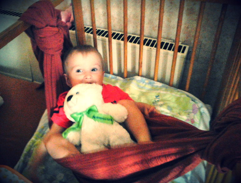 если у вас есть детская кроватка, то там можно так завязать) у нас нет такого))