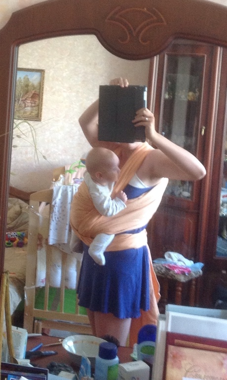 Сделала одинарный потому что все равно не ходила так, быстро замотала, Маню положила, провозилась, чтоб сфотать, завязала и развязала. Буду пробовать еще, спасибо)
