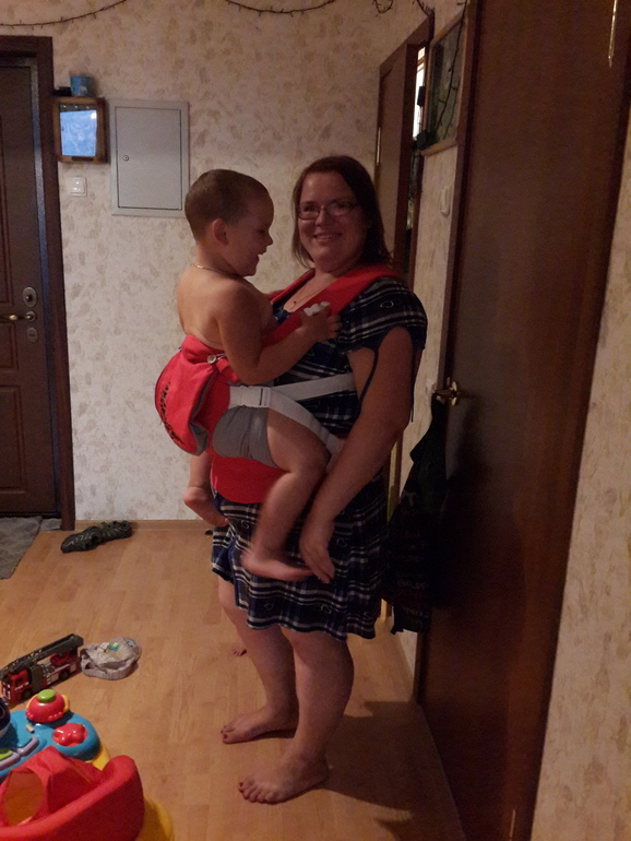 единственно, что меня немножко , я бы сказала, озадачивает...степень затянутости и притянутости ребенка стропами к себе...у нас в среднем вот так