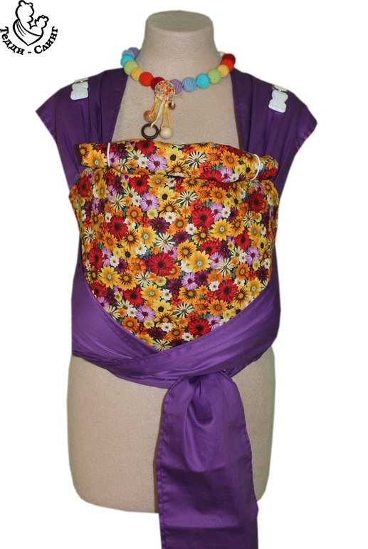 а учитывая мою страсть к фиолетовому...но как оказалось он уже был забронирован..а ткани желтой уже не было в наличии...но мне было предложена не менее красивая тканюшка для спинки..более того..с оговоркой на маму-слоненка лямки , специально для меня были сшиты длиннее, чем в варианте стандарт.