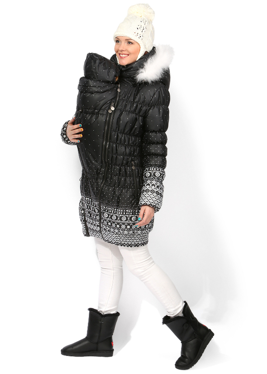 Надеюсь что поместится. У меня малыш планируется апрельский, если учесть что у нас зима начинается в октябре а заканчивается в марте, то ему будет где-то 7-11 месяцев. Должен поместится. Тем более что курточки длинненькие выбираю, короткие не рассматриваю вообще.