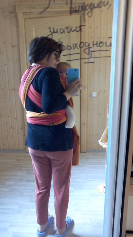 Вы мотаете Простой крест? Если да, то не надо. Мотайте Крест над карманом с нерасправленными полонами.Много недостатков. Первый — я не вижу карман. Далее колени выше попы. ент поддержки от коленки до коленки, нет поддержки верхней части спинки, малыш высоко. Надо всё исправлять.