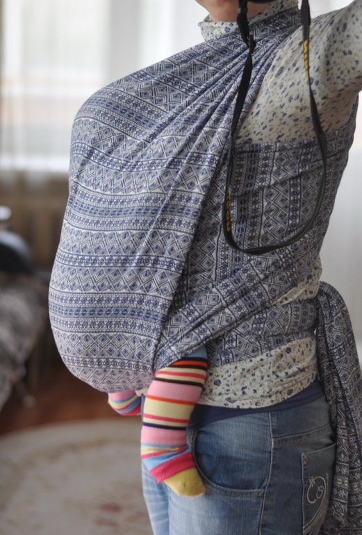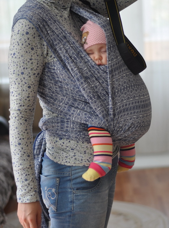 Да, так лучше. Проверьте высоту намотки — попа малыша примерно на уровне Вашего пупка.