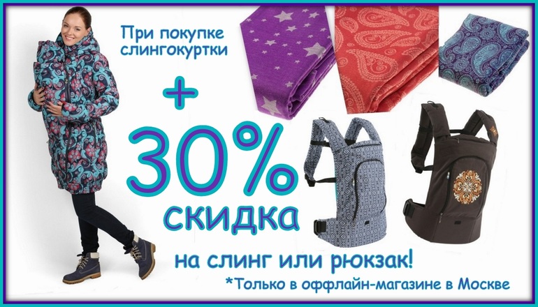 При покупке ЛЮБОЙ слинго-куртки Вы можете приобрести СЛИНГ или РЮКЗАК со скидкой 30%