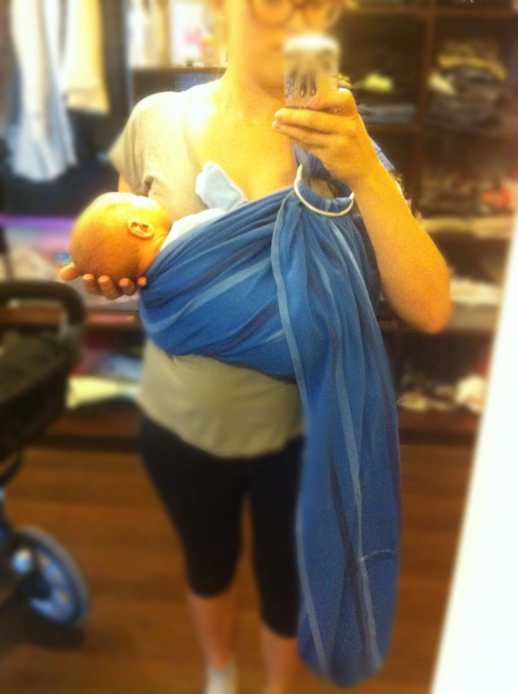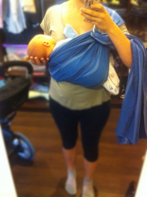 Меня немного смущает то, как лежит ткань на спинке, я вроде все подтянула, малыш лежит животиком ко мне, нижняя ручка обнимает меня, и ножки одна сверху, другая снизу.