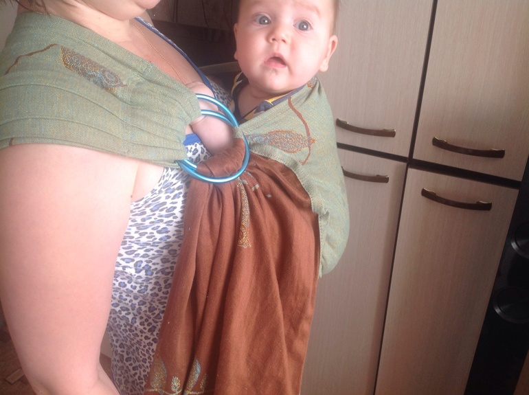 Слинг с кольцамиДевочки, в продолжении поста. Купила я другой слинг фирмы mum's era. Попробовала намотать, но что-то мне не нравится. Посмотрите пожалуйста: