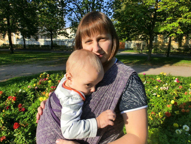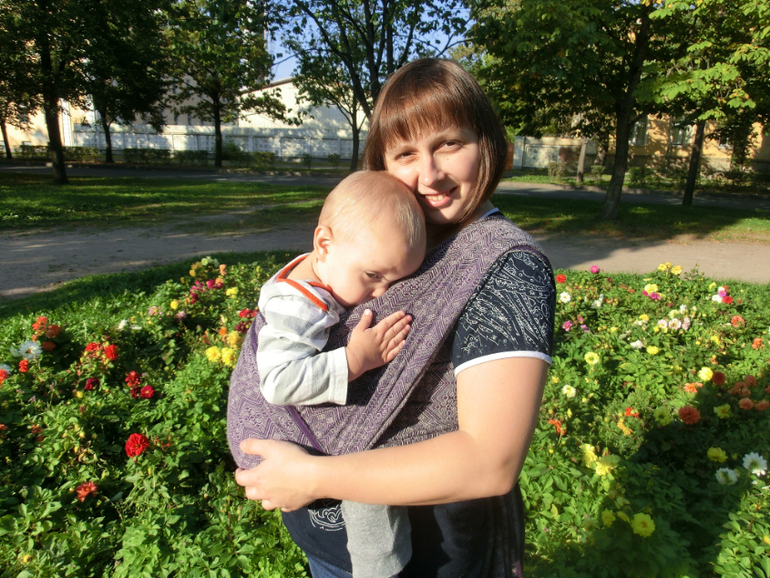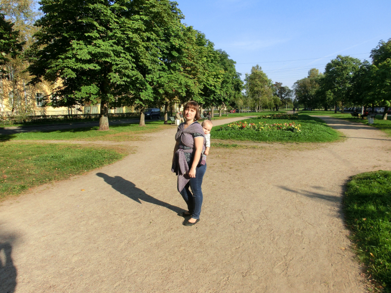 Это мои попытки освоить заспинные намотки))) ДР и рюкзак меня не устраивают - у меня лямки с плеч соскальзывают и раздражают этим) А эта намотка приятно удивила, правда сегодня у меня все сползало (ручки кудрявые))